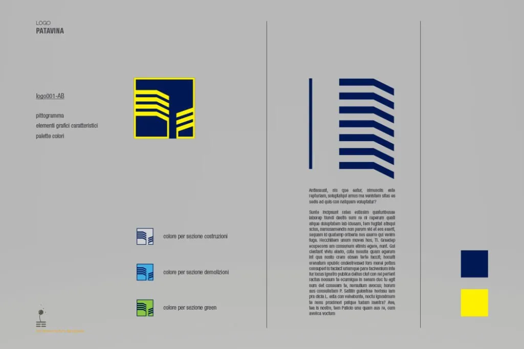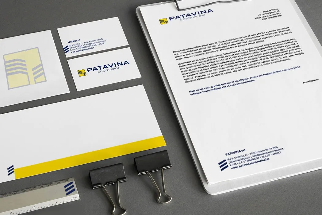 La brand identity Patavina comunica solidità, professionalità e innovazione nel settore costruzioni attraverso elementi grafici che richiamano l’architettura moderna e la precisione tecnica.
