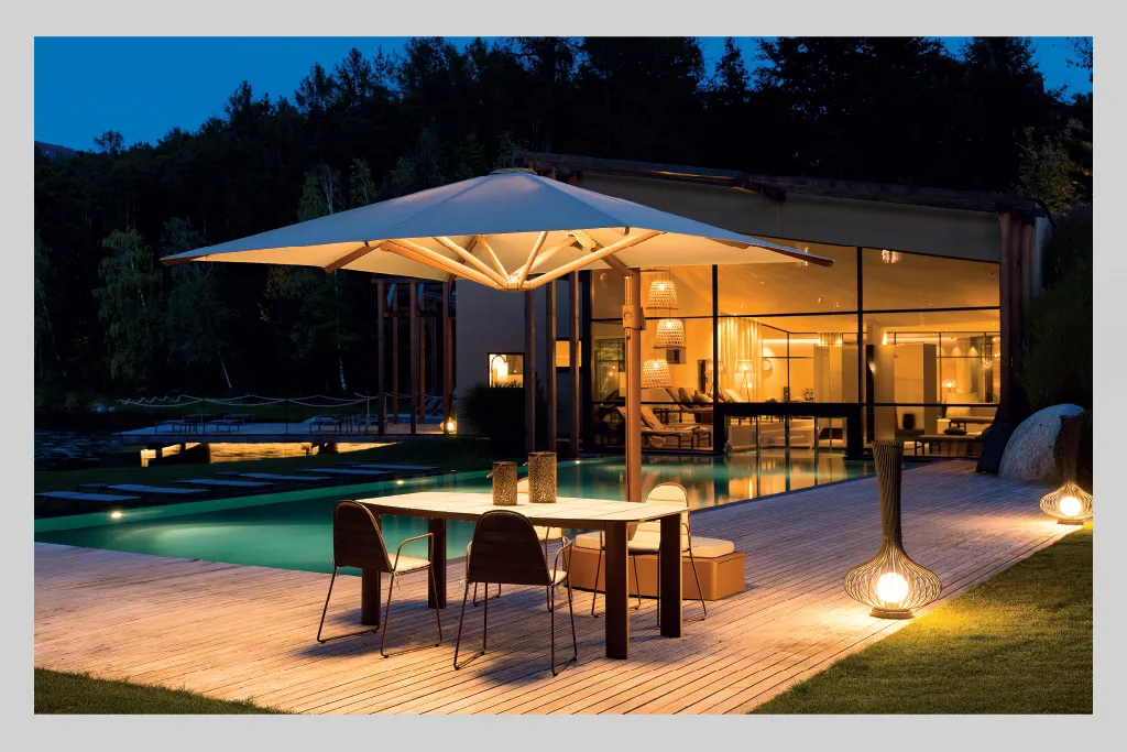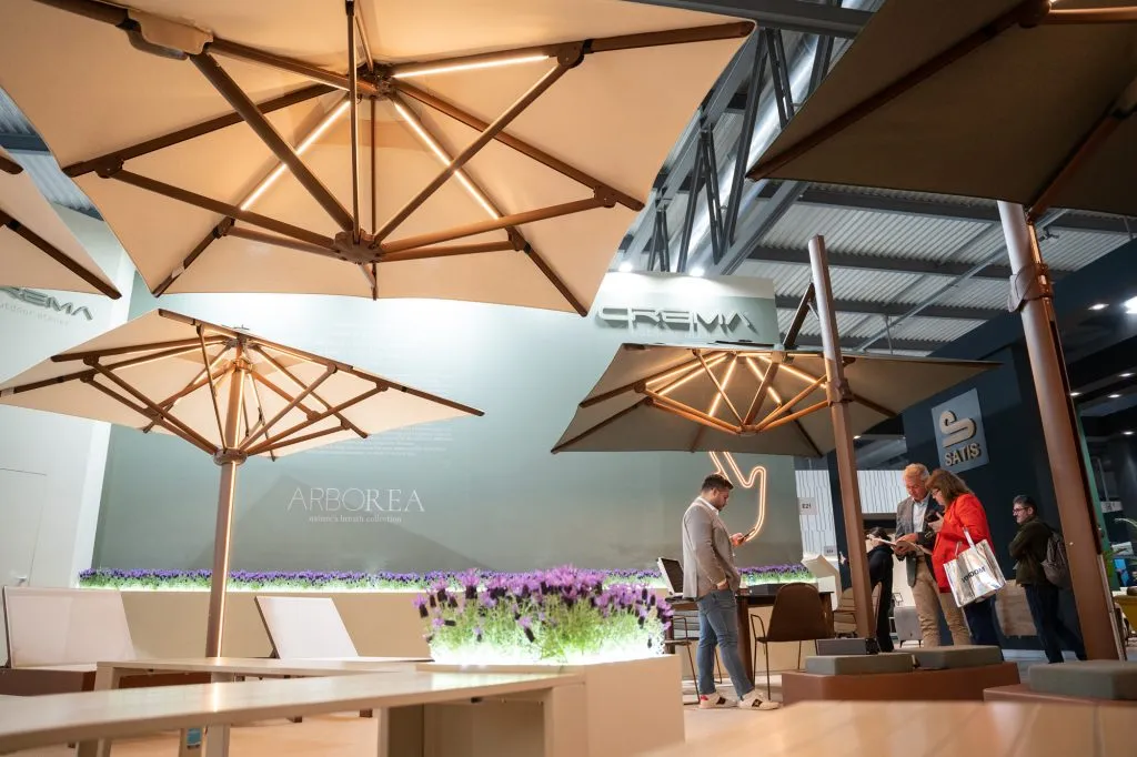 La collezione ARBOREA nasce dal desiderio di dare una nuova interpretazione dell’ombrellone e dell’arredamento outdoor, capace di dialogare con la natura che lo circonda.