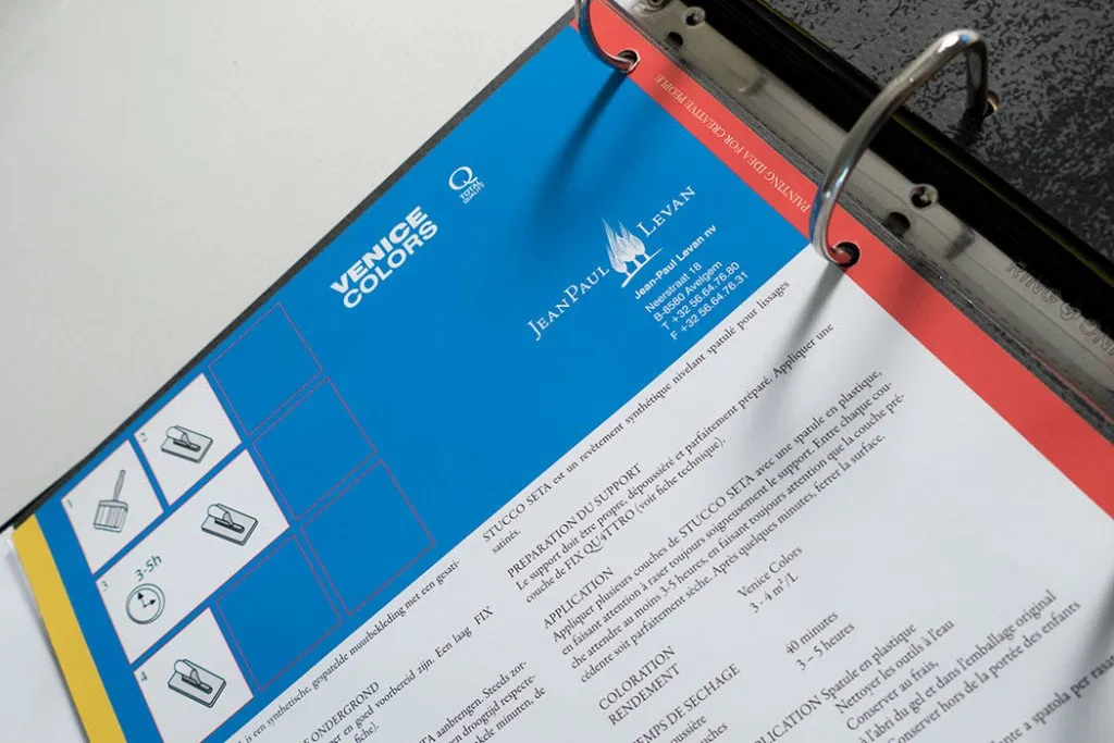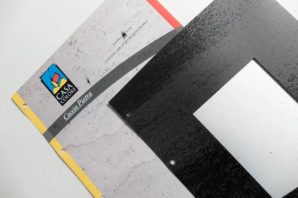Il design del catalogo trasforma la presentazione tecnica dei prodotti in un’esperienza visiva coinvolgente. Ho sviluppato un sistema grafico dove ogni finitura decorativa – dalle texture “Cacio Pepe” alle superfici “Stucco Seta” – viene presentata attraverso onde fluide e dinamiche che evocano il movimento naturale del colore e della materia.